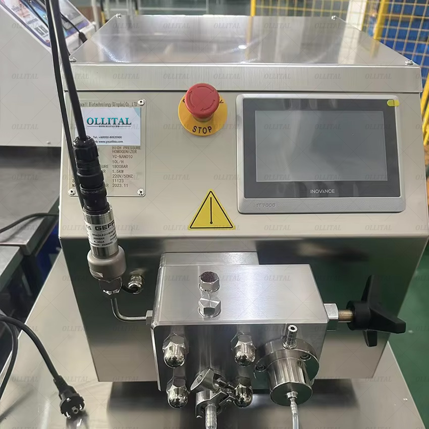 Ultra-High Pressure System: The core high-pressure pump pressurizes liquids to hundreds or even thousands of bar, ensuring effective particle disruption under high-energy impact.