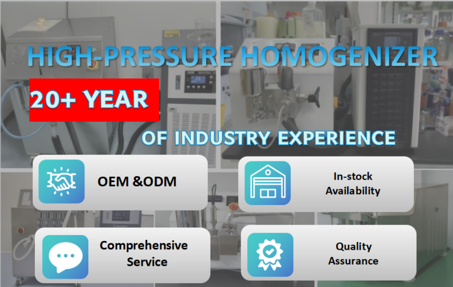 The Ollital Nanometer-Scale High-Pressure Homogenizer is a precision-engineered instrument for particle size reduction, emulsification, dispersion, and cell lysis. It uses ultra-high pressure to force materials through a specialized homogenizing valve, generating intense shear, impact, and cavitation forces that break particles down to the nanometer scale. Widely used in pharmaceutical, biotechnology, food, cosmetic, and chemical industries, this homogenizer is a core tool for nano-dispersion processes such as liposome preparation, vaccine adjuvant production, and microbial cell disruption.